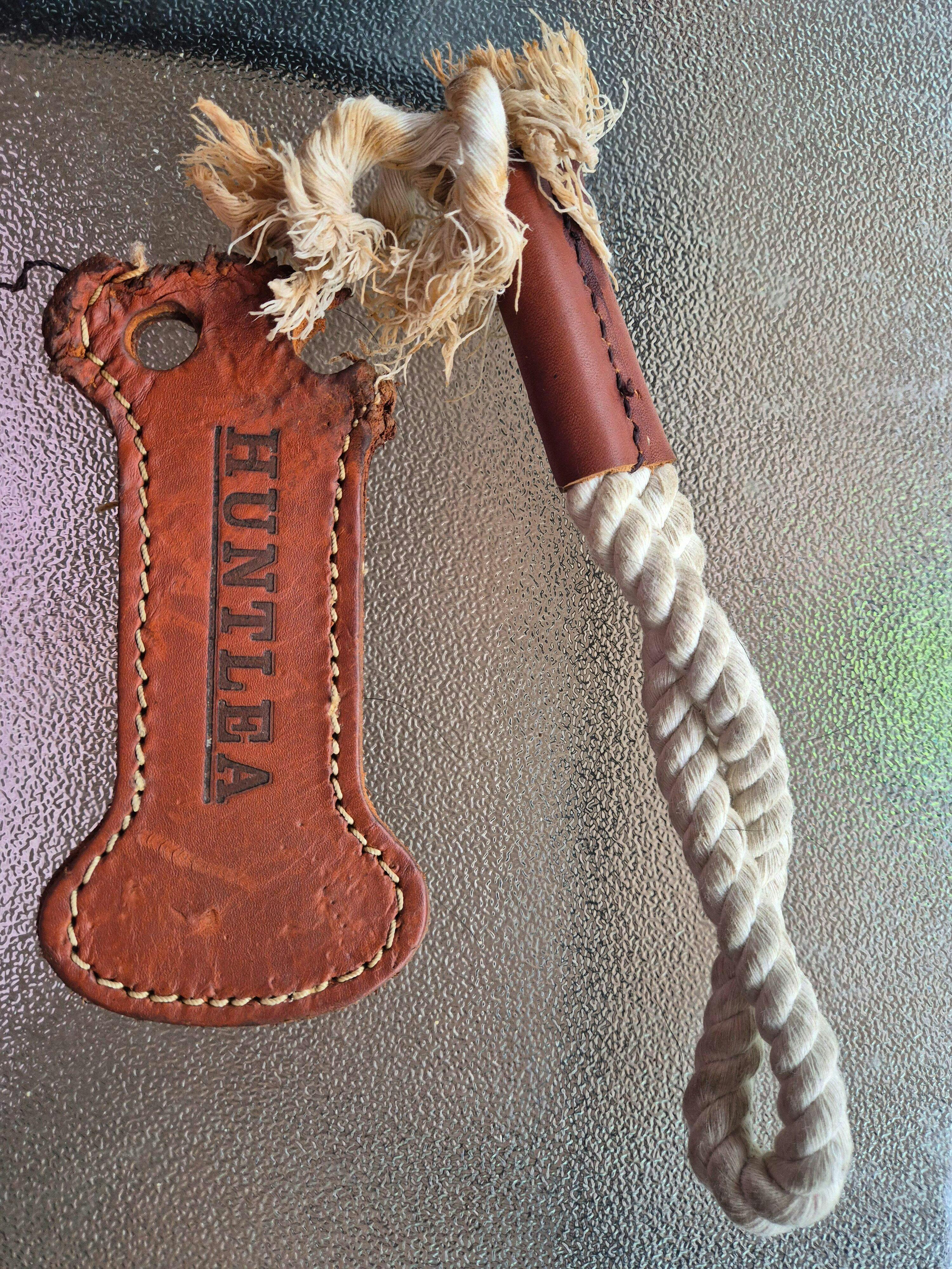Huntlea Rope and Leather toys are made from 100% natural cotton rope and genuine leather. Each toy is heat stamped with our logo to make it unique. Huntlea rope toys are handmade in our factory by skilled craftsman.